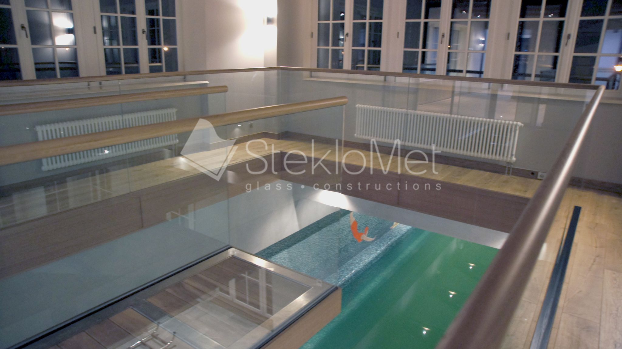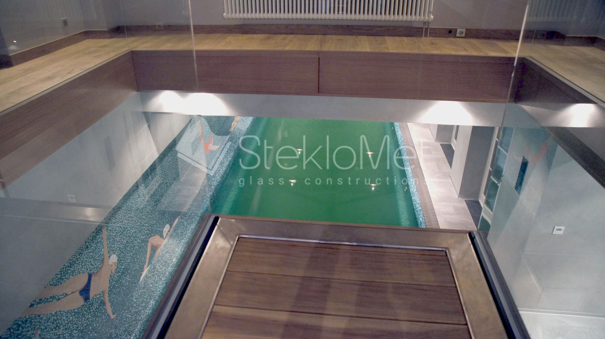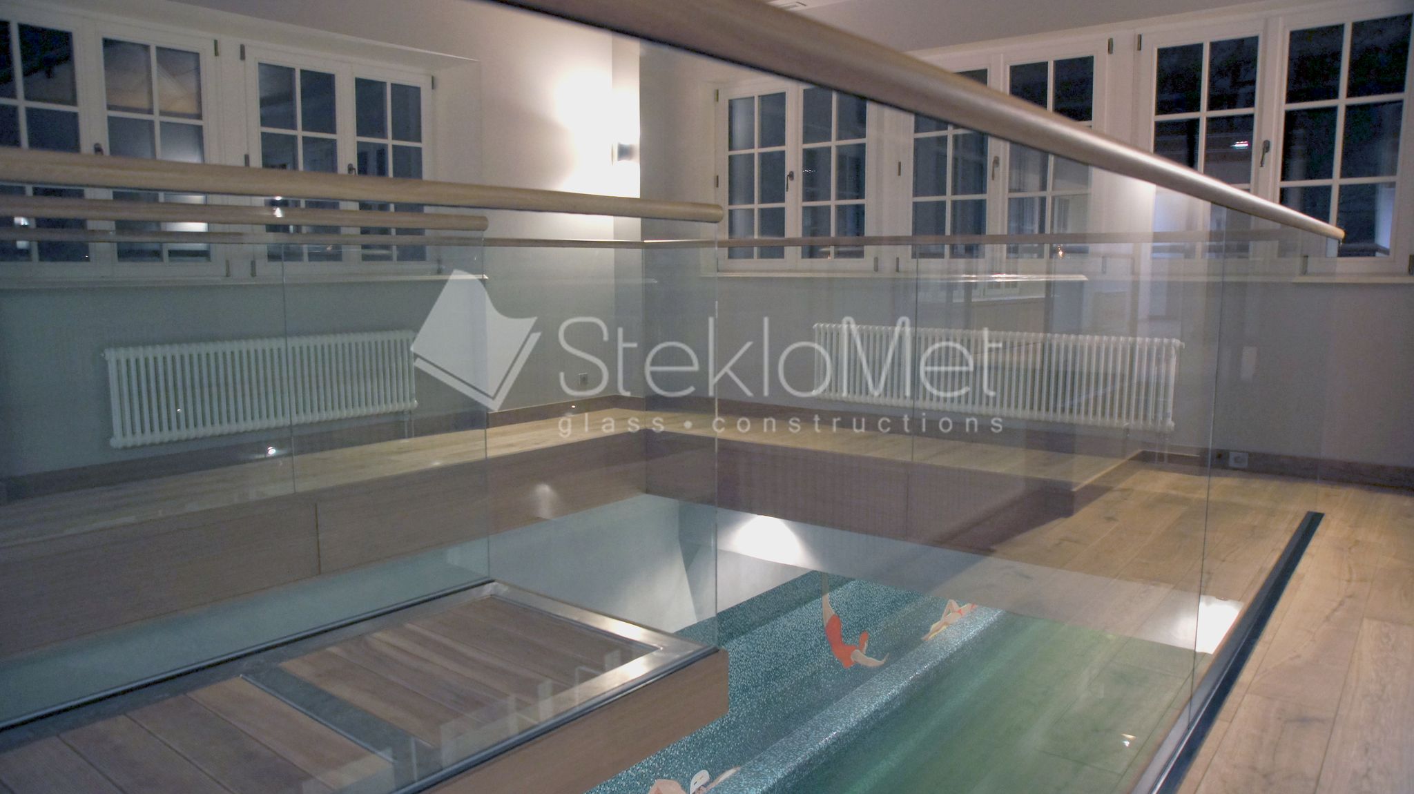 - стеклянная глухая перегородка из зоны отдыха