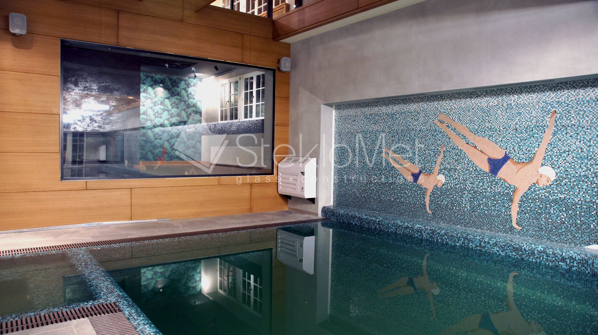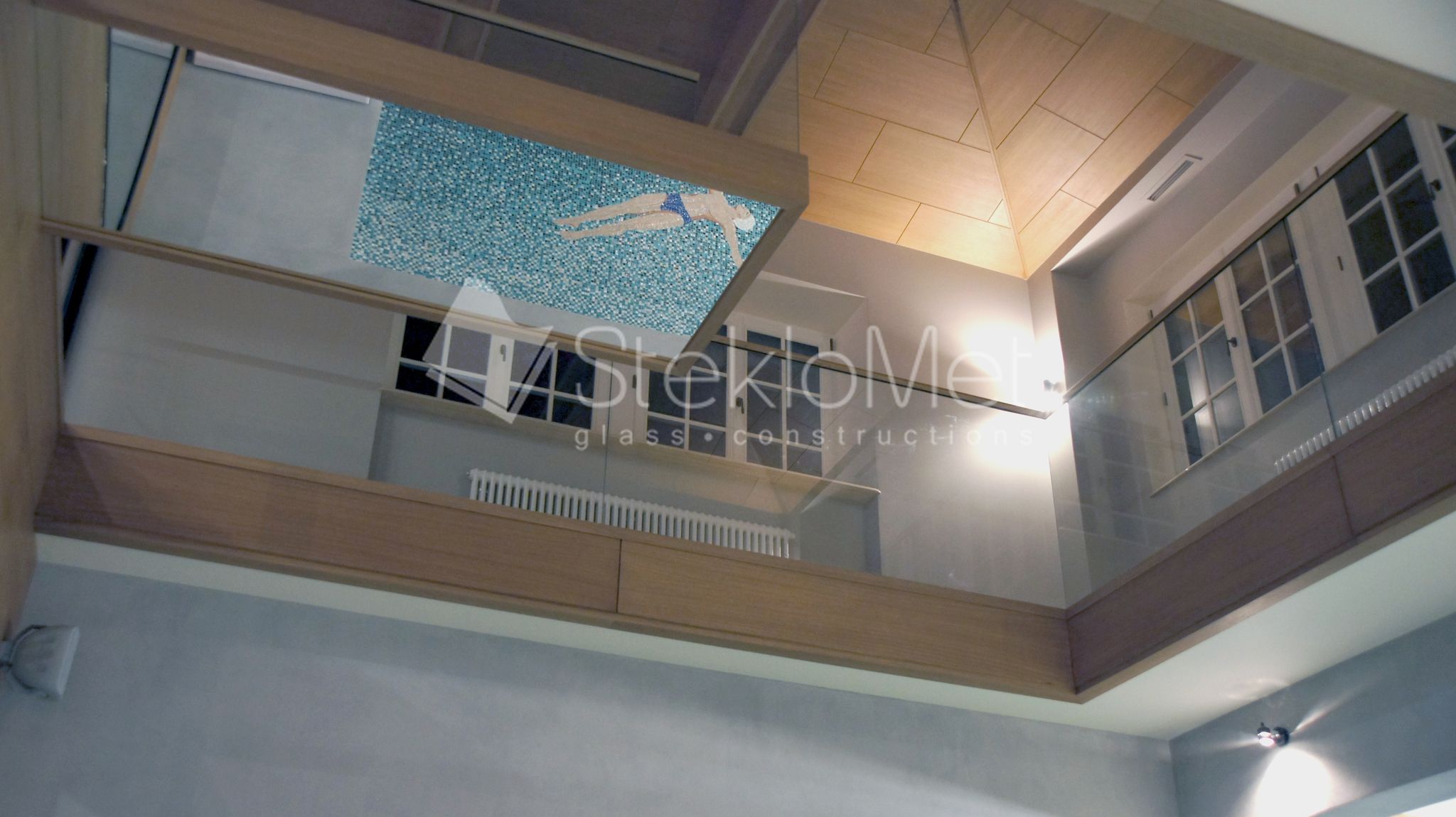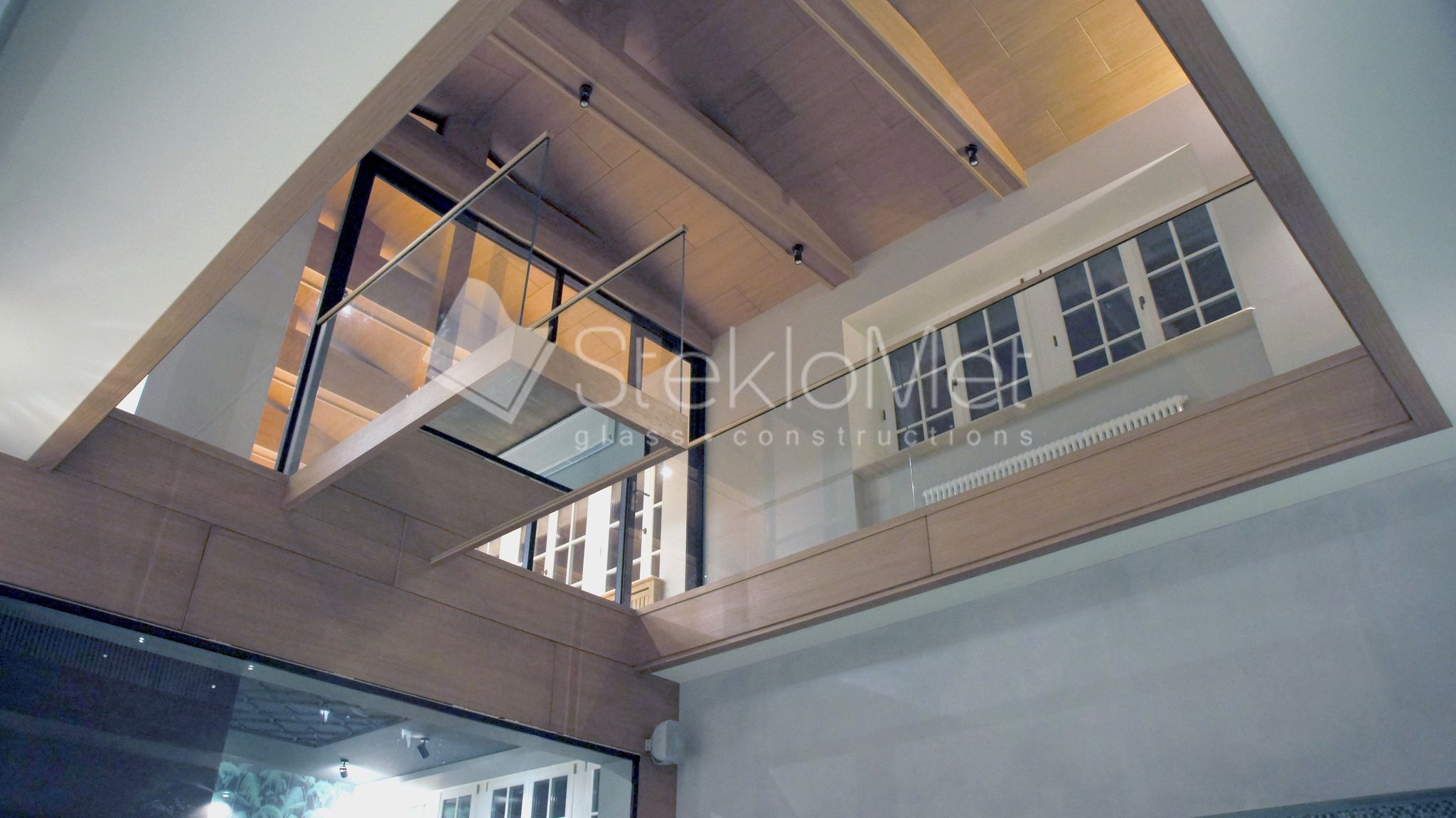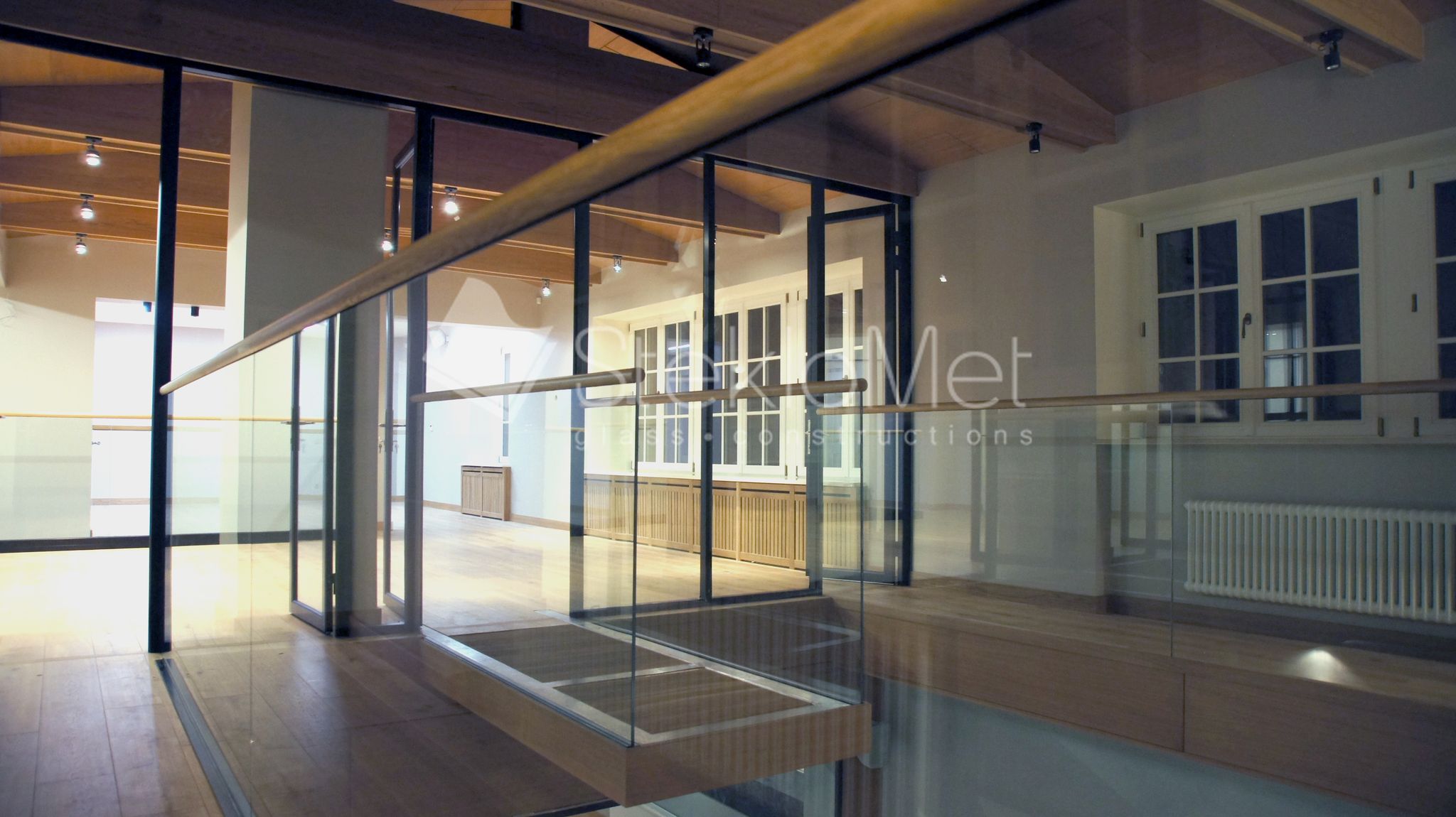 - стеклянная глухая перегородка из зоны отдыха