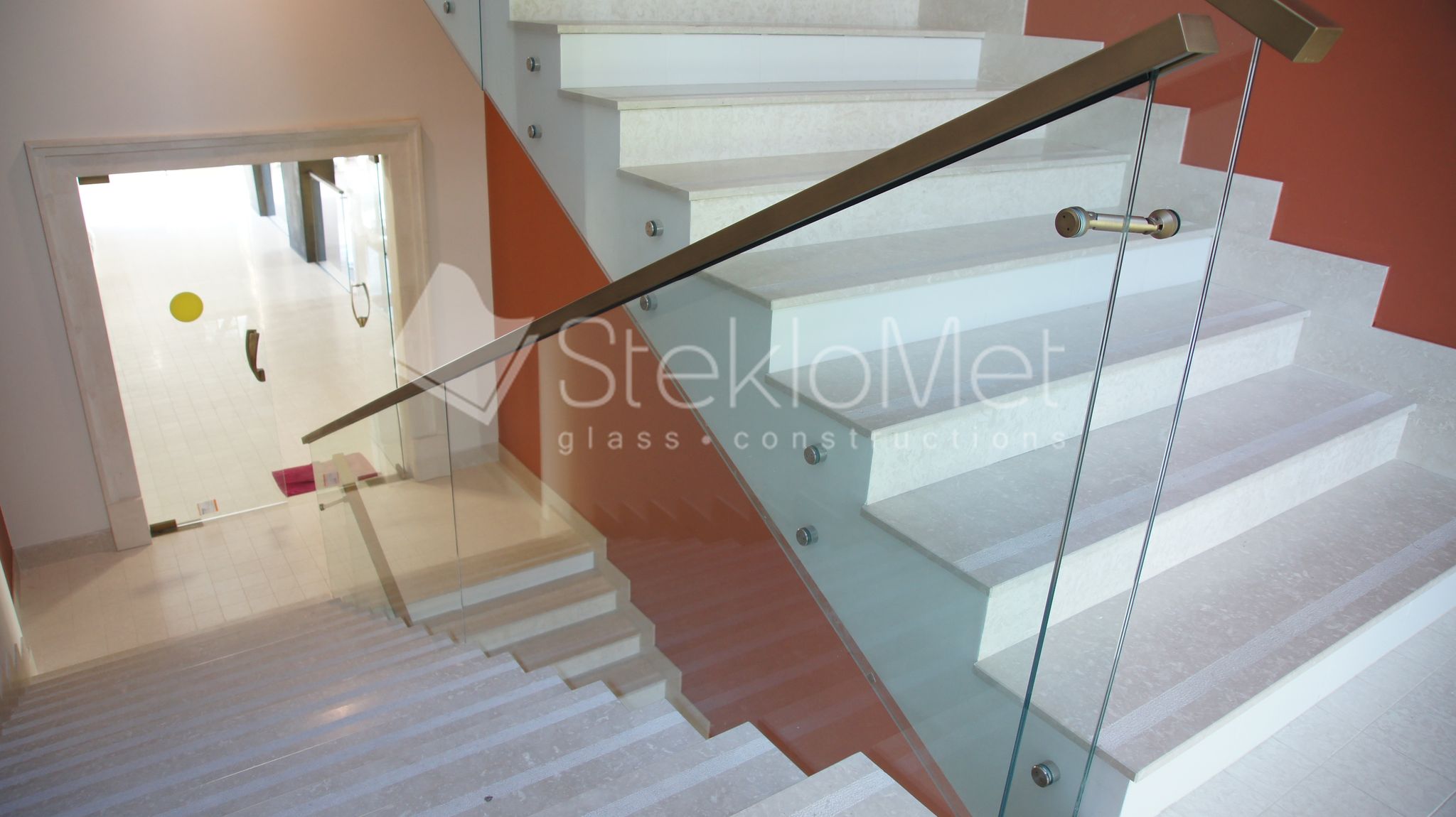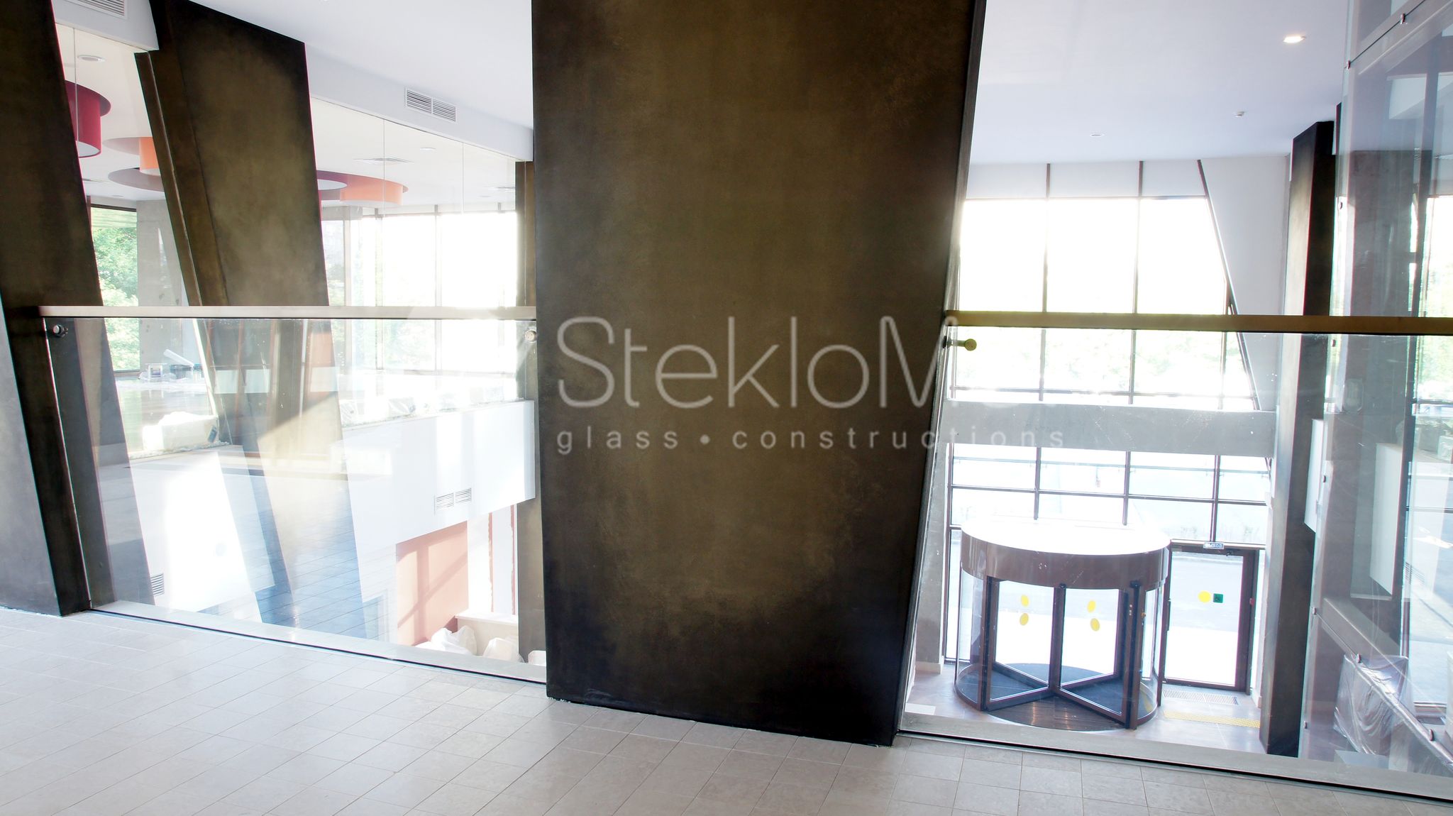 - лестничные ограждения из стекла на двух лестницах по 4 этажа каждая